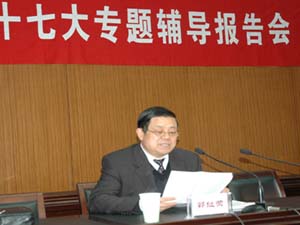4月10日,公司黨委特邀市政協(xié)學習文史委員會副主任、副教授郭繼榮為工貿系統(tǒng)離休干部作了關于學習十七大精神的專題輔導報告。郭主任圍繞十七大報告關于貫徹落實科學發(fā)展觀的幾個必須堅持、當前國際國內形勢及存在的困難和問題、今后九項工作的大政方針等,作了深入淺出的講解和分析。40余名離休干部參加報告會,對深入學習十七大精神表現(xiàn)出很高的積極性,表示將在促進社會發(fā)展、維護社會和諧等方面發(fā)揮余熱,作出應有貢獻。