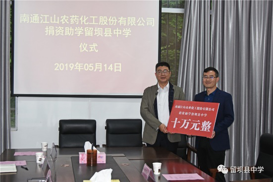 獻上一份愛心,托起一片希望。在這個孕育希望的季節(jié),2019年5月14日南通江山農(nóng)藥化工股份有限公司捐資助學(xué)留壩縣中學(xué)儀式在留壩縣中學(xué)會議室舉行,捐資助學(xué)儀式由留壩縣中學(xué)校長楊锃主持。