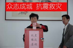 5月12日,四川汶川發(fā)生7.8級大地震。消息傳來后,工貿(mào)公司全體員工非常關(guān)注,災(zāi)情牽動著每一個(gè)人的心。14日上午,公司領(lǐng)導(dǎo)班子研究后,決定結(jié)合全市正在開展的“博愛在行動、人道萬人捐”活動發(fā)出倡議:一是倡議全體員工每人捐助一筆善款賑災(zāi);二是鼓勵身體健康的年輕同志自愿獻(xiàn)血。倡議發(fā)出后,公司領(lǐng)導(dǎo)帶頭捐款,各部門員工紛紛慷慨解囊,短短半個(gè)小時(shí),就收到了40名員工捐款合計(jì)7600元,有8名同志報(bào)名參與集體獻(xiàn)血。大家紛紛表達(dá)了為災(zāi)區(qū)人民獻(xiàn)出一份愛心、一點(diǎn)力量的心意,同時(shí)表示將立足本崗、勤奮工作,以圓滿完成本職工作的實(shí)際行動,支援抗震救災(zāi)。 公司還通過短信平臺向所屬投資企業(yè)發(fā)出緊急倡議,號召各企業(yè)發(fā)揚(yáng)人道主義精神,緊急支援災(zāi)區(qū)同胞。目前,工貿(mào)系統(tǒng)企業(yè)正積極組織廣大職工參與捐款,形成一股抗震救災(zāi)、愛心捐贈的暖流。