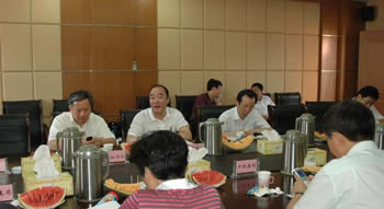 7月18日,冒著高溫酷暑,沈振新副市長(zhǎng)率市經(jīng)貿(mào)委等有關(guān)部門及我公司領(lǐng)導(dǎo)赴觀音山印染色織產(chǎn)業(yè)園調(diào)研園區(qū)規(guī)劃,專題研究西城區(qū)部分印染企業(yè)搬遷入園工作。
