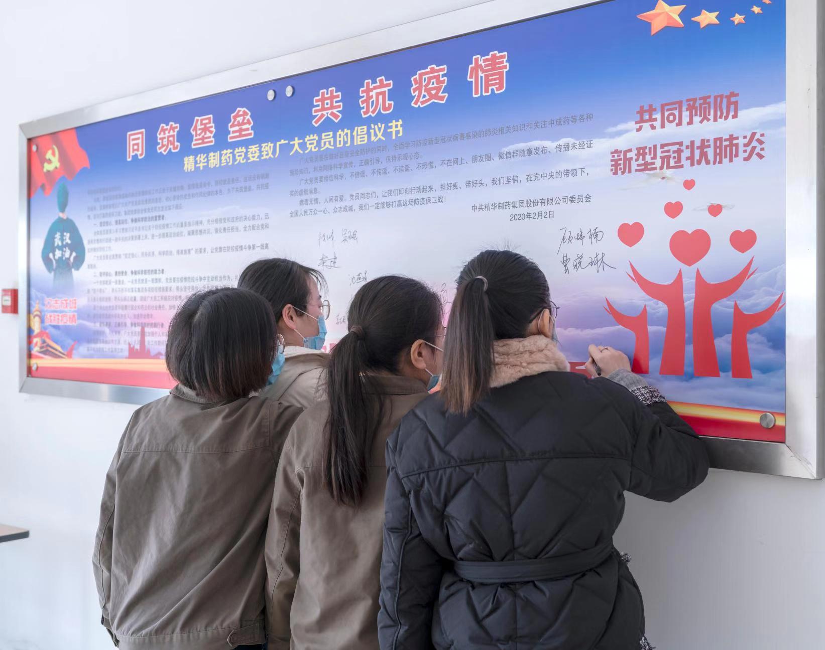 精華制藥黨委發(fā)出倡議書《同筑堡壘,共抗疫情》,倡議黨員同志擔好責,帶好頭,萬眾一心,眾志成城,以高度的思想覺悟和政治站位爭做科學防控疫情的宣貫者、助力者和踐行者。黨委領(lǐng)導高度重視疫情防控工作,職責分工明確,制度規(guī)范到位,行動快速高效,一把手親自指揮、親自部署,各級黨員干部各級領(lǐng)導帶頭值班,沖在疫情防控第一線,組織黨員始終堅守崗位,守護群眾生命安全和身體健康,以實際行動踐行初心使命。除了做好自身防護工作和日常工作外,黨員同志們還紛紛要求主動值班,堅守崗位。黨員帶頭到生產(chǎn)車間一線參加正柴胡飲顆粒的包裝生產(chǎn),集團公司科室全體人員也主動加入到包裝正柴胡飲顆粒的工作中去。 為保障職工安全健康,精華制藥防控領(lǐng)導小組召開專題會議,制定防控工作方案,通過微信群、電話等方式部署各項疫情防控工作。組織各職能部門、分公司、子公司負責人對單位員工情況進行摸排調(diào)查。凡是有疫情較重地居住史或旅行史的人員,凡是與疫情較重地外來人員有密切接觸史的人員,凡是與疑似、確診病人有接觸的人員,凡是出現(xiàn)發(fā)燒、干咳等異常情況的人員,立即上報并自我隔離觀察。堅決杜絕疫情的傳入與傳播,努力踐行一個國有企業(yè)的社會責任。