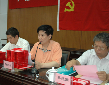 6月29日,在建黨八十八周年前夕,集團(tuán)黨委隆重舉行迎“七一”暨先進(jìn)表彰大會(huì)。集團(tuán)黨委及領(lǐng)導(dǎo)班子成員、所屬企事單位黨組織負(fù)責(zé)人、離休干部代表、本部黨員共70余人參加會(huì)議。會(huì)議由黨委副書記、副董事長徐憲華主持。 集團(tuán)黨委書記、董事長陳照東作重要講話,回顧了中國共產(chǎn)黨建黨八十八年來走過的光輝歷程,總結(jié)了過去一年集團(tuán)黨建工作在思想建設(shè)、組織建設(shè)、廉政建設(shè)、老干部工作等方面所取得的成績;通報(bào)了今年上半年經(jīng)濟(jì)工作基本情況:1-6月份主要指標(biāo)同比回落,但二季度環(huán)比回升,初步呈現(xiàn)復(fù)蘇向好趨勢(shì);企業(yè)搬遷、資產(chǎn)盤活、上市融資、資源整合等一批項(xiàng)目推進(jìn)工作扎實(shí)有效,空殼企業(yè)、直管資產(chǎn)、安全生產(chǎn)等管理工作進(jìn)一步加強(qiáng)。集團(tuán)黨委堅(jiān)持推進(jìn)黨的建設(shè)和經(jīng)濟(jì)建設(shè)同步發(fā)展,為有效應(yīng)對(duì)金融危機(jī)、保持經(jīng)濟(jì)平穩(wěn)、健康發(fā)展起到堅(jiān)強(qiáng)的領(lǐng)導(dǎo)核心作用。 針對(duì)下半年黨建及經(jīng)濟(jì)工作,陳照東書記會(huì)上要求各級(jí)黨組織以保增長為中心目標(biāo)、以服務(wù)項(xiàng)目發(fā)展為第一要?jiǎng)?wù),通過深入開展學(xué)習(xí)實(shí)踐科學(xué)發(fā)展觀活動(dòng),不斷提高黨組織凝聚力和戰(zhàn)斗力,為完成年度目標(biāo)任務(wù)提供強(qiáng)有力的思想和組織保障。他指出下半年經(jīng)濟(jì)工作要突出五個(gè)“抓”:集中精力抓盤活、一著不讓抓搬遷、堅(jiān)定不移抓上市、積極有效抓整合,練好內(nèi)功抓管理;以黨建工作的高效運(yùn)轉(zhuǎn),推動(dòng)經(jīng)濟(jì)實(shí)現(xiàn)又好又快發(fā)展,奪取“扎實(shí)保增長”的全面勝利。 會(huì)議表彰了江山股份黨委等4家“五好”黨組織、王明華等47名優(yōu)秀黨員、王建華等23名優(yōu)秀黨務(wù)工作者,并向光榮入黨60年的離休干部代表贈(zèng)送了紀(jì)念品。江山股份黨委副書記陶坤山等受表彰的先進(jìn)集體和個(gè)人代表作了大會(huì)發(fā)言。 會(huì)上還舉行了新老黨員在黨旗下宣誓和重溫入黨誓詞儀式。