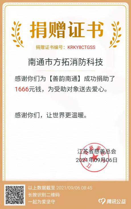 方拓消防堅持“依法組織、廣泛發(fā)動、堅持自愿、鼓勵奉獻”原則,公司領導干部帶頭捐贈,全體員工積極支持、踴躍參與,共同為南通慈善扶貧救助事業(yè)奉獻愛心。今后,方拓消防將充分發(fā)揮自身優(yōu)勢,繼續(xù)關心、支持慈善事業(yè),樹立公司良好的社會形象。