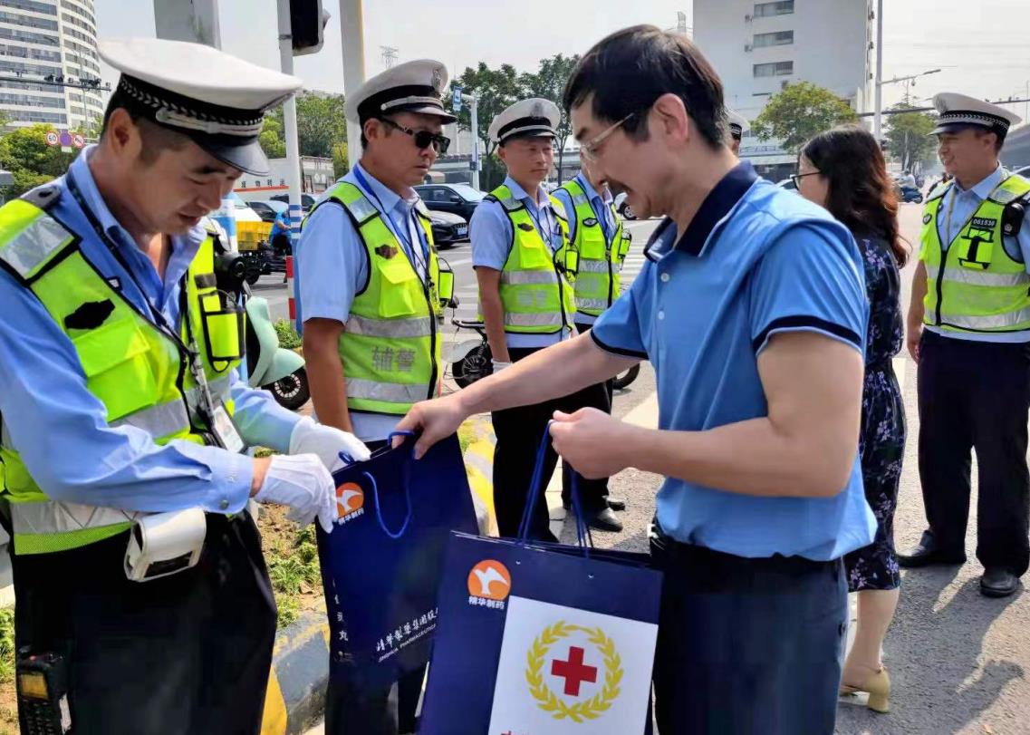 南通市公安局交警支隊副支隊長周鵬、交警支隊四大隊大隊長張穆對精華制藥和紅會冒著高溫酷暑慰問交警的愛心行動表示感謝。雖然近期連日高溫,整個交警支隊文明城市創(chuàng)建工作仍正在扎實推進。此次精華制藥想交警所想,捐贈的相關(guān)物品正是急需的物資。